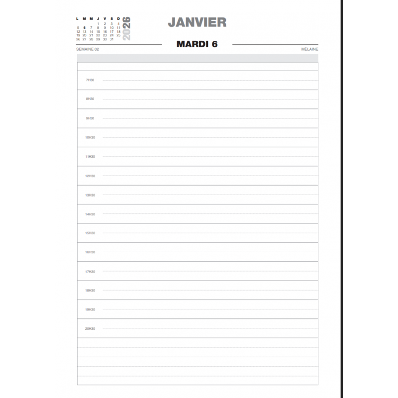 376 pages au total, dont 1 page calendrier annuel et 4 pages notes